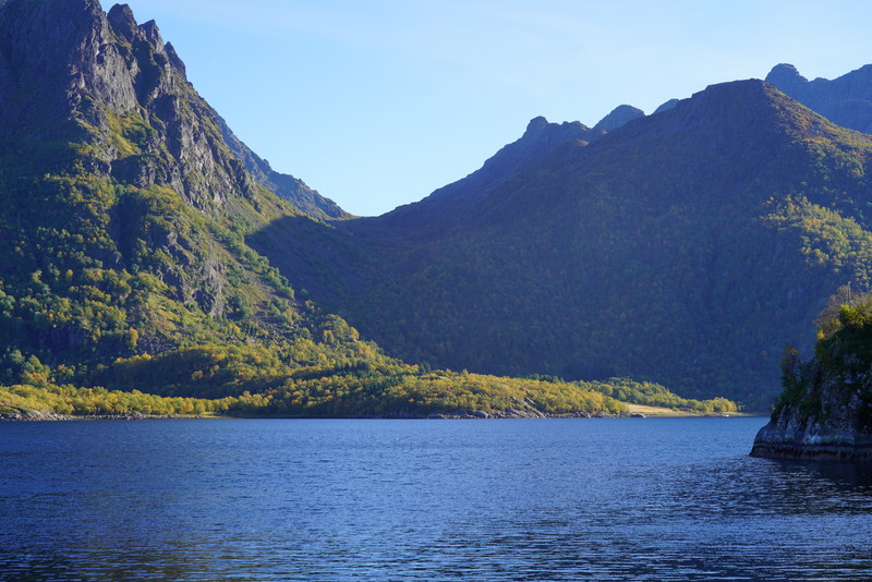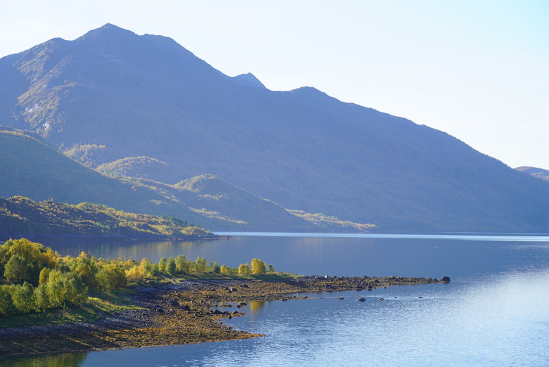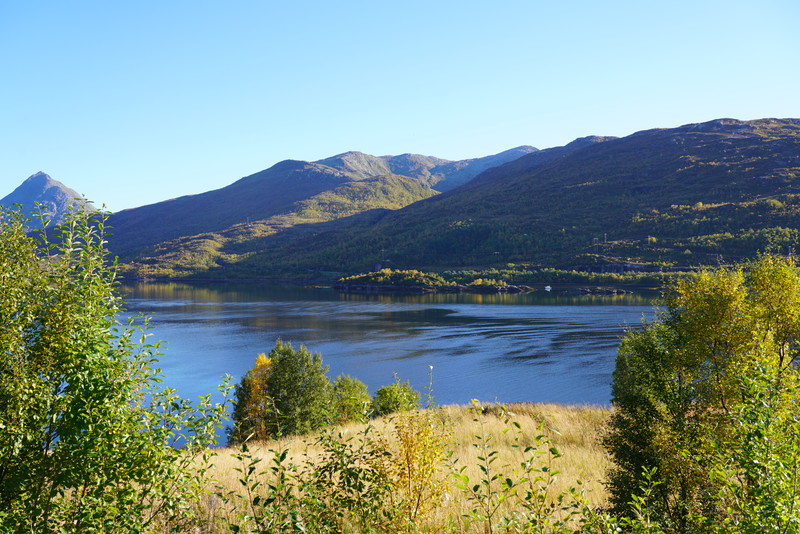 下の写真はあるフィヨルドの一番奥の海が途切れる場所を撮影したものです。ここのフィヨルドにはショートカットの橋はないので、ぐるーっと周り込んで進まなくてはなりませんでした。