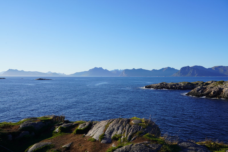 砲台跡がある高台からロフォーテン諸島の西の方を眺望した風景です。