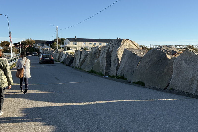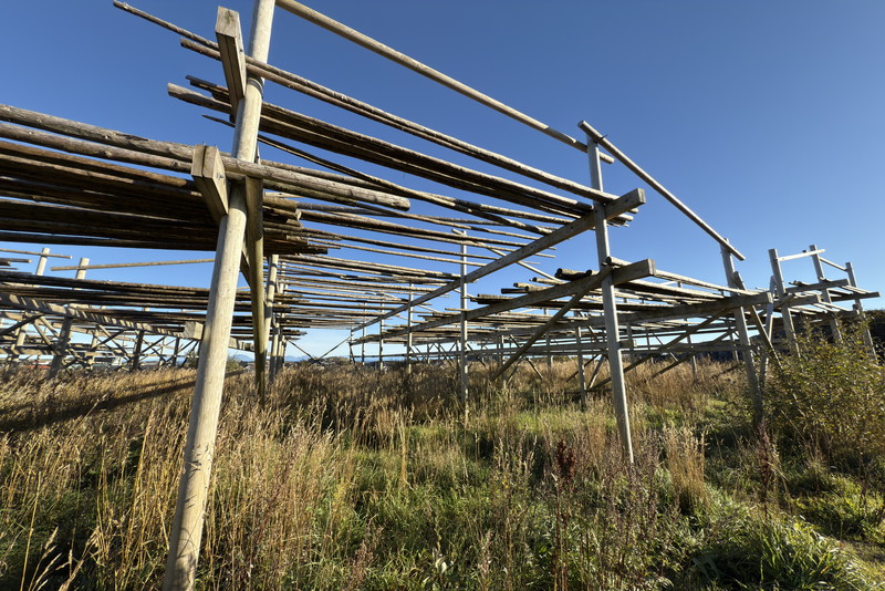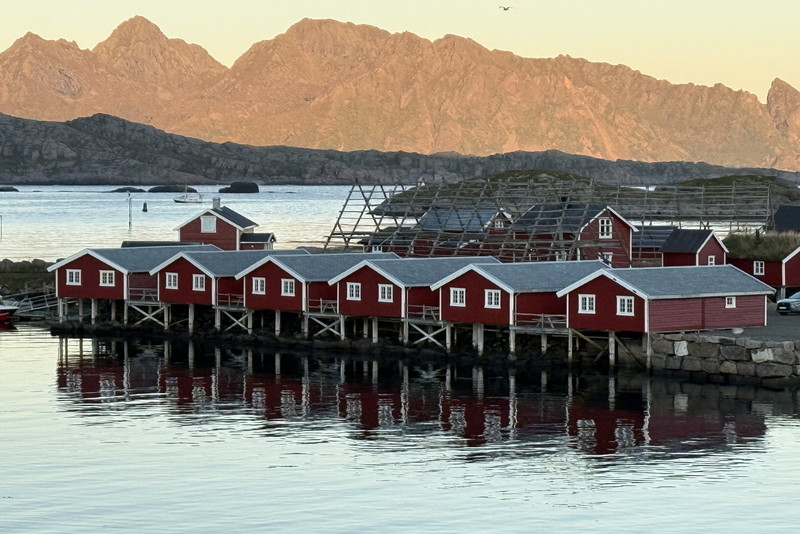下の写真はタラを干すための棚です。あちらこちらで見かけましたがここでの風物詩になっています。ロフォーテン諸島では数千年のタラ漁の歴史があるそうです。現在干しタラは主にイタリアに輸出され、また頭はアフリカに輸出されているそうです。