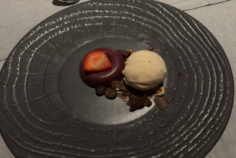 ホテルに到着してまもなく夕食になりました。魚のマリネ風の前菜、白身魚料理、チョコレートケーキとアイスのデザートでした。
