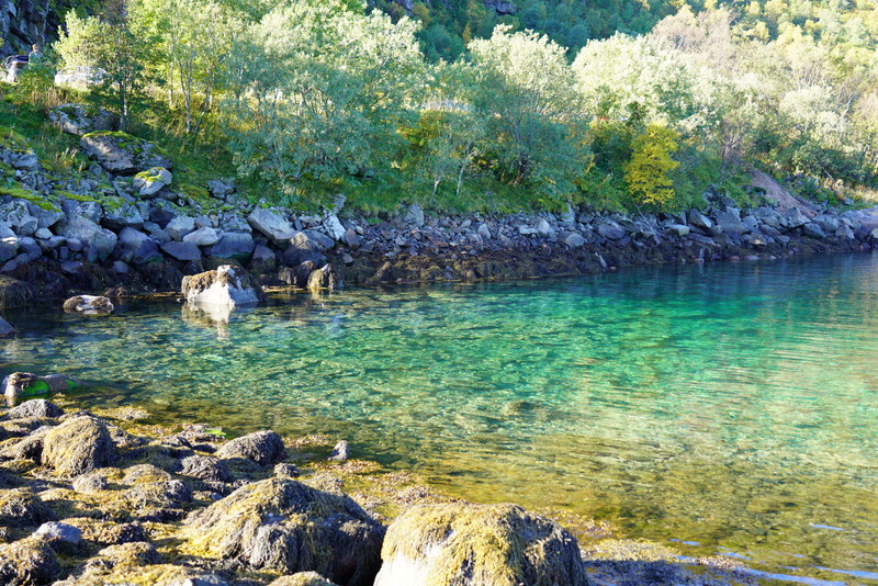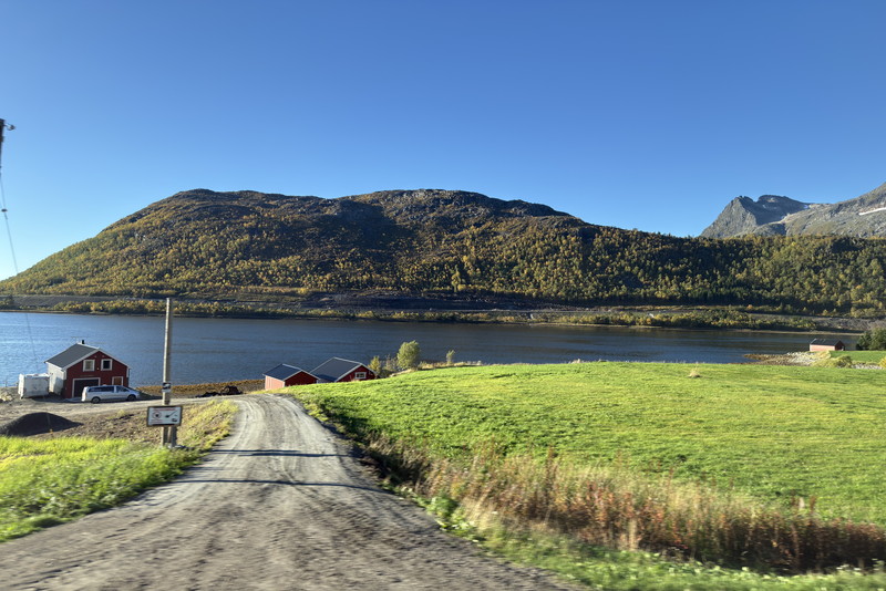 下の写真はあるフィヨルドの一番奥の海が途切れる場所を撮影したものです。ここのフィヨルドにはショートカットの橋はないので、ぐるーっと周り込んで進まなくてはなりませんでした。