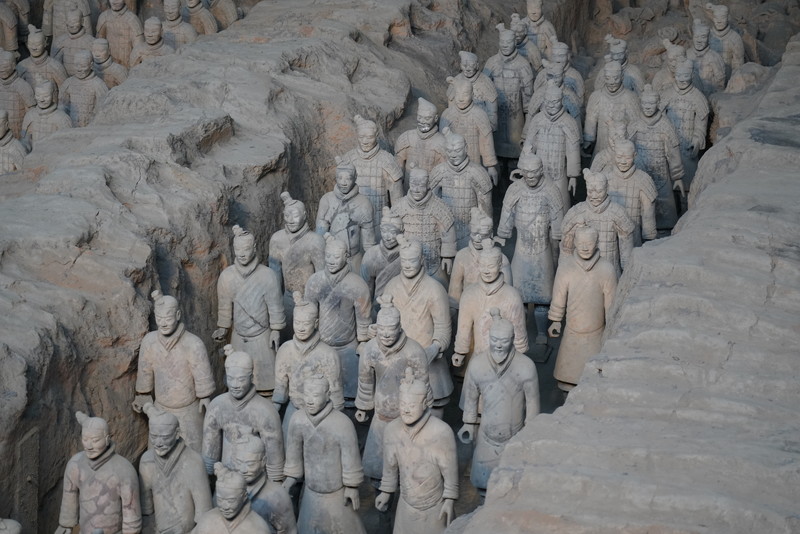 兵馬俑は、秦の始皇帝のために紀元前3世紀につくられ、彼の死後の世界で軍団を率いるためだと言われています。この場所は1974年に発見されて世界遺産になっています。