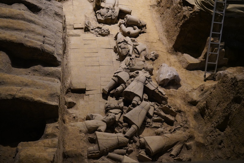 最後に訪れたのは二号坑です。ここでは兵士像は溝の中にまだ倒れたままになっていてこの後どのように復元するのか楽しみな状況でした。