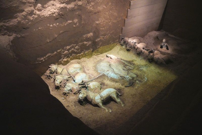 ここはまだあえて発掘していないそうです。内部にあると思われる貴重な遺跡が痛まないように配慮しているのだと思います。発掘すれば秦の始皇帝の思想を研究する上で極めて貴重な資料・場所になると思いますが、いつ頃発掘できるかはまだ分かっていないそうです。