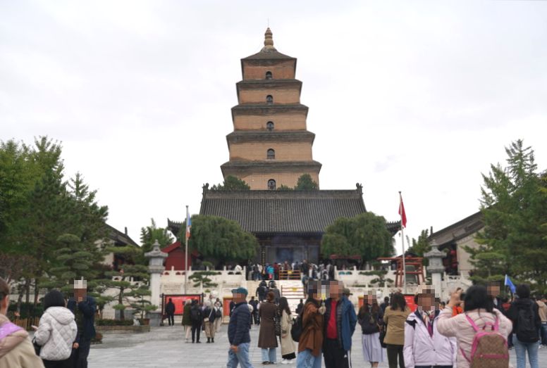 次の動画は大慈恩寺入り口付近の様子です。多くの観光客が大雁塔を背景に記念撮影をしていました。