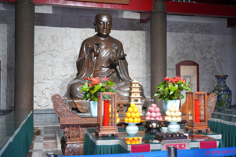 また青龍寺は弘法大師・空海(くうかい)が修行した場所です。日本の平安時代に留学僧として遣唐使船で中国に渡った空海は804年から6年間この寺で密教の研究に励みました。その後密教の奥義を日本に持ち帰り、真言宗の開祖となりました。空海は仏教の布教とともに中国の文学・書道・天文学・医学などの知識を日本に伝え、日本と中国の文化交流に多大な貢献をしました。