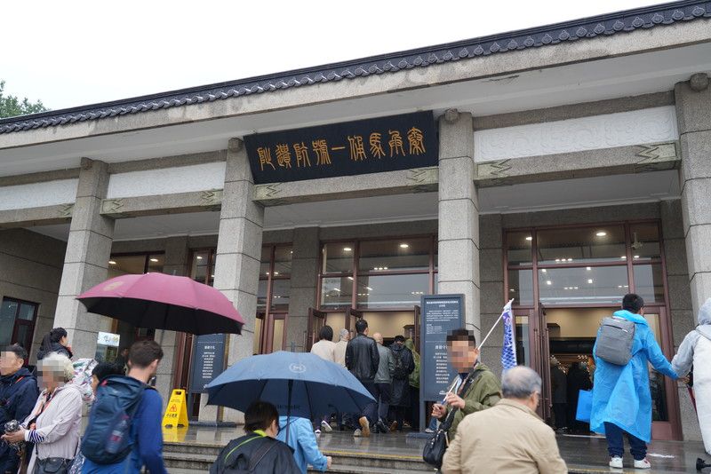 外はあいにくの小雨でしたが、大勢の観光客が訪れていました。下の写真は傘をさして正門に並ぶ入場者の様子です。
