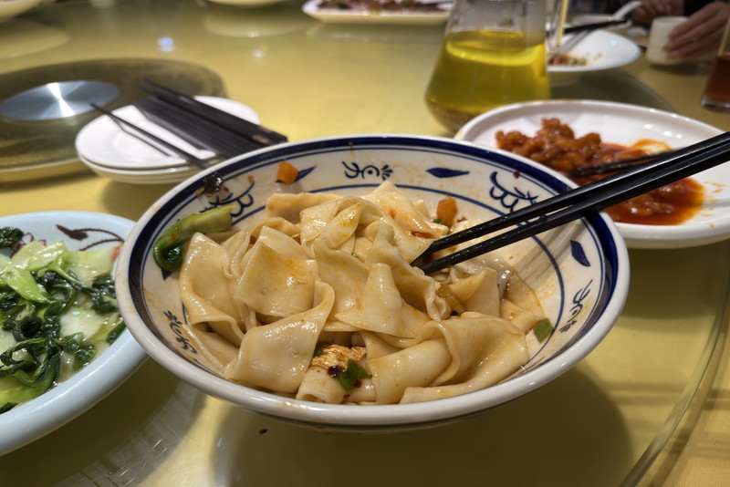 この日の昼食は中国の陝西省の郷土料理であるビャンビャン麺でした。