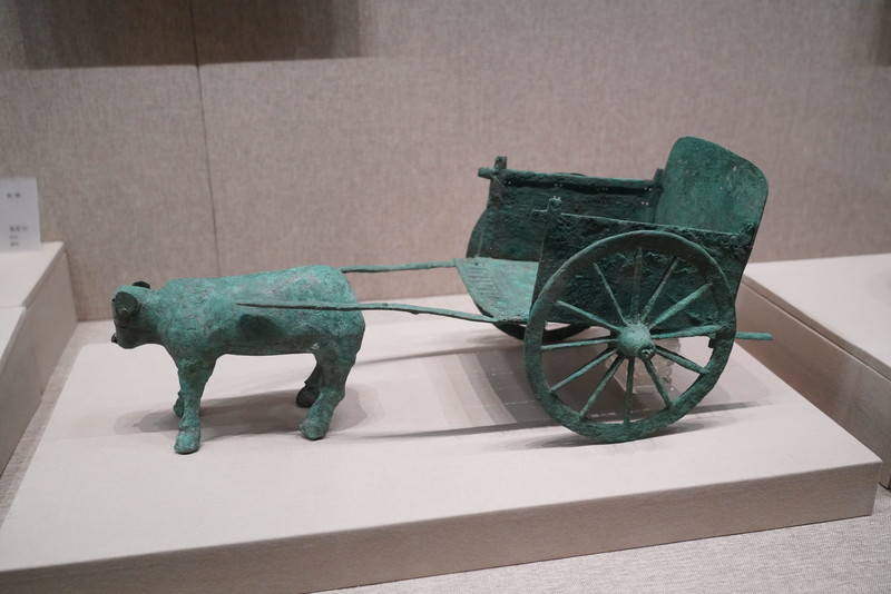 青銅製の牛車だと思いますがとてもよくできた置物だと思います。