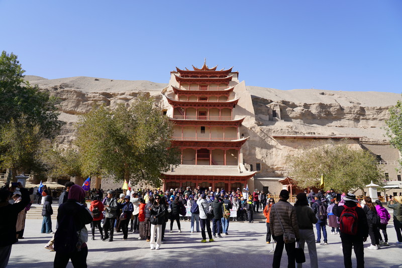 朝ホテルを出て最初に、東西文化の交流を物語る仏教美術の宝庫である莫高窟の見学へ行きました。