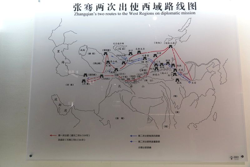 下は張騫の西域遠征ルートの地図です。ルートを変えて2回遠征したことが分かります。