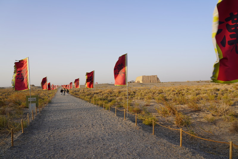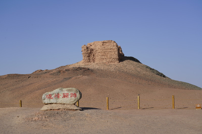 陽関は、敦煌市の南西約70kmにあるシルクロードの重要な関所の1つです。同時期に設置された玉門関より南に位置したので「陽関」と称されたそうです。玉門関と併せて「二関」と呼ばれ、漢代に武帝が河西回廊の防衛のために設置した要所でした。