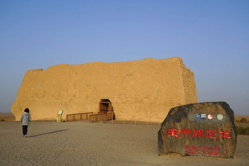 玉門関(小方盤城)は敦煌から90キロ離れた北西の丘にある方形の城です。陽関と同時期に建設され、西安(長安)~天山回廊の交易ルートにあり、中国と西域を結ぶシルクロードを防衛するために設置された関所です。周囲の城壁は状態が良く保存され烽火台跡なども見ることができます。周りは荒涼たるゴビ砂漠が広がっています。