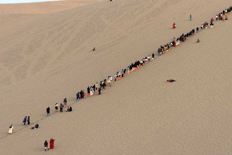 鳴沙山は風が吹いたときに砂が鳴くような音を出すことで知られています。この現象は世界でも非常に珍しいものだそうです。