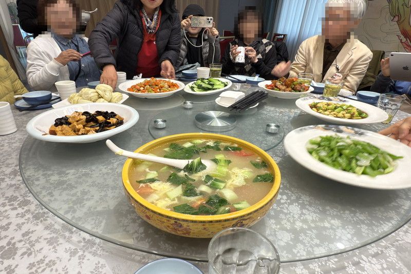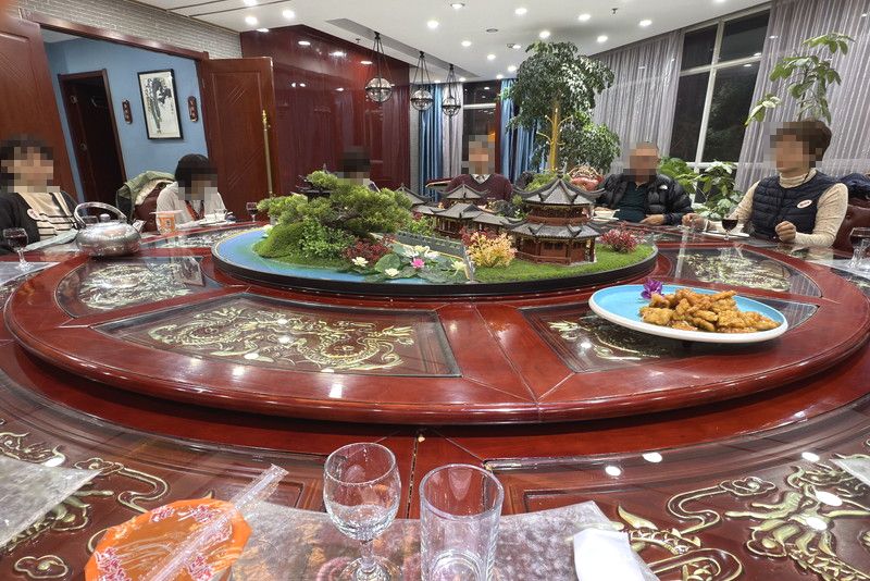 夕食はレストランで驢肉黄麺料理(ロバ肉料理)をいただきました。ロバ肉は特に抵抗なく食べることができました。今回は少し豪華なターンテーブルでした。