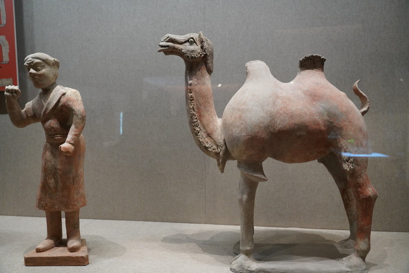 左下はシルクロードを行き来していた人とラクダを造形したものだと思われます。綱はもうありませんが人が手綱を引いている様子が想像されます。右下は豊富に出土した陶磁器です。