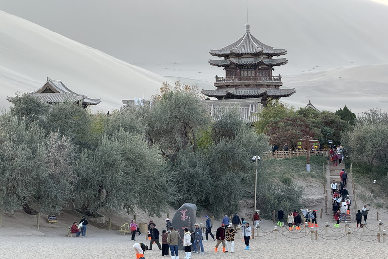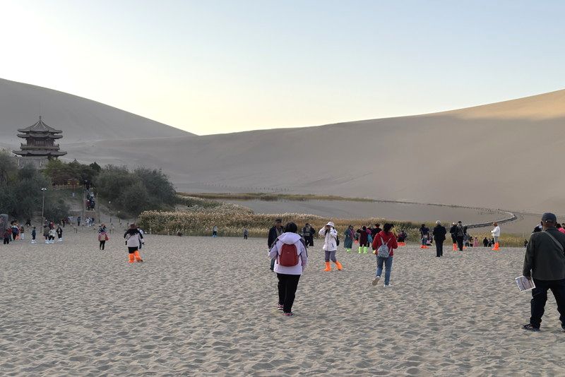 鳴沙山は、敦煌の南に広がる壮大な標高約1700メートルの砂丘です。月牙泉は、鳴沙山の麓で静かに水を湛える奇跡のオアシスです。これらは敦煌の有名な観光地になっています。