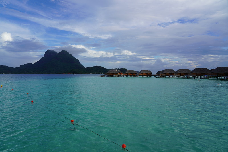 私たちの部屋はボラボラ島の象徴である最高峰オテマヌ山が正面に眺望できる水上コテージでした。このような眺望のコテージは大人気ですぐに埋まってしまうので、約1年前にこの部屋を予約しました。