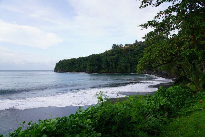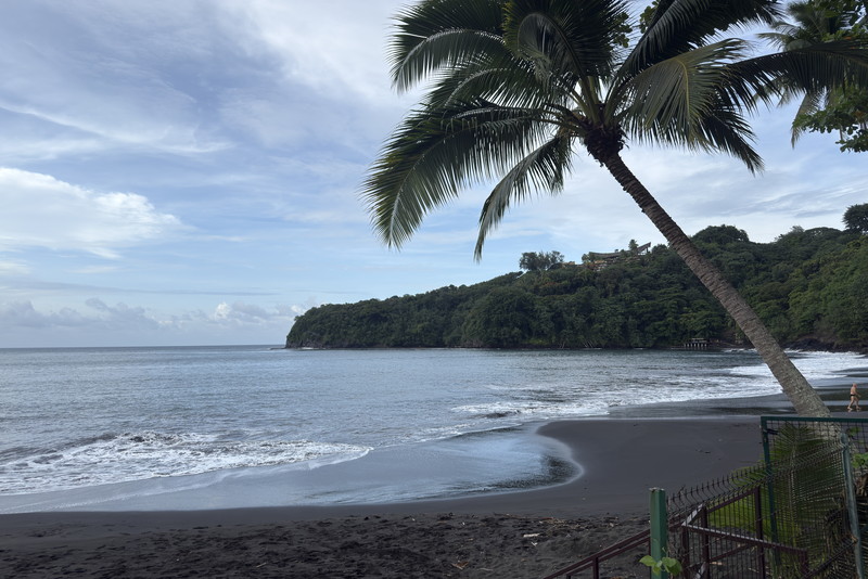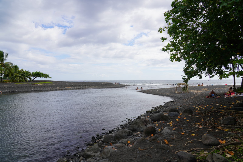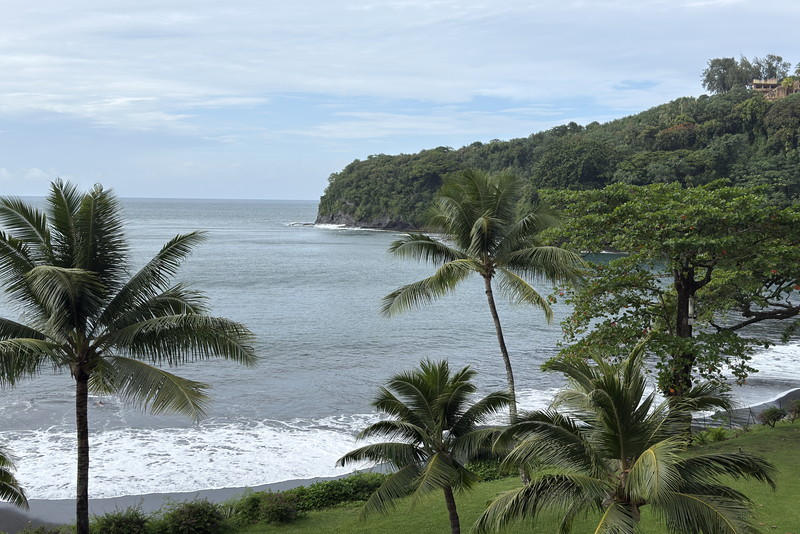 下はホテルの裏側に広がるプライベートビーチですが、いわゆる黒砂海岸でした。実はこの海岸には常に大波が押し寄せてきていて、時々大音響が響き渡るような状況でした。この海岸の先にはラグーンがないので大海の波がそのまま勢いよく押し寄せているのだと思われます。