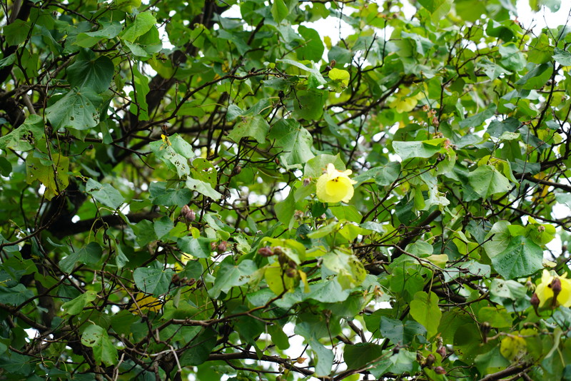 下の写真は黄色のシーハイビスカスです。この午前中の花の色合いを覚えておくようにガイドさんに言われました。