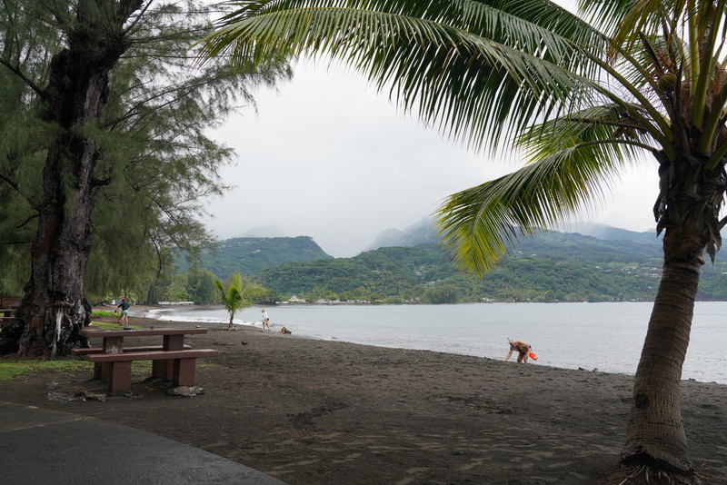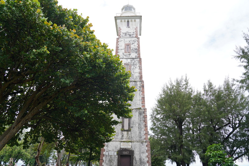 下の写真は近くにあるポイントビーナス灯台で、タヒチ島の中で特に象徴的な歴史的建造物です。この灯台はキャプテン クックが金星を観測するために観測所を設置した跡地に1867年に建てられたそうです。8 階建てで高さは約32 mあり、白い壁に赤い窓枠と赤い縁取りが印象的です。内部は公開されていませんでしたが周辺は市民の憩いの場になっていました。
