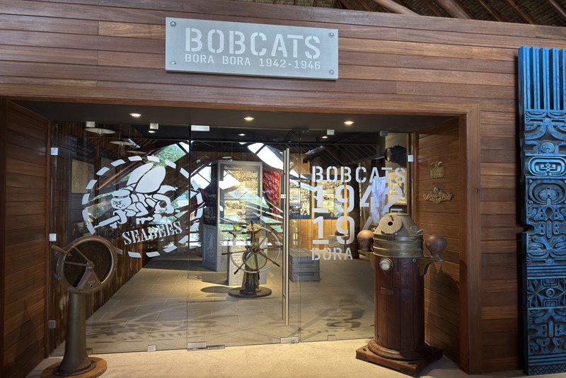 その後はホテル内のお店などを回りましたが、一か所ホテルには不似合いな施設があることに気が付きました。下の写真のように「BOBCATS」と看板がある部屋です。ここはタヒチの戦争記念館になっていて「ボブキャット作戦」に関する色々な機材・器具、資料や写真などが展示されていました。