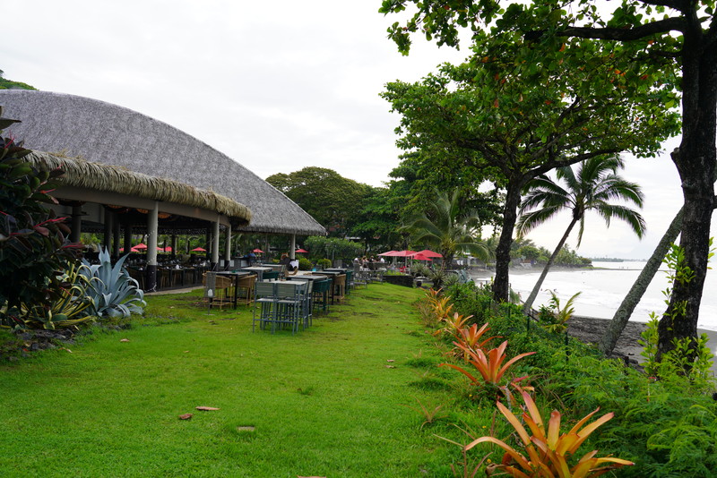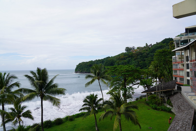 下はホテルの裏側に広がるプライベートビーチですが、いわゆる黒砂海岸でした。実はこの海岸には常に大波が押し寄せてきていて、時々大音響が響き渡るような状況でした。この海岸の先にはラグーンがないので大海の波がそのまま勢いよく押し寄せているのだと思われます。