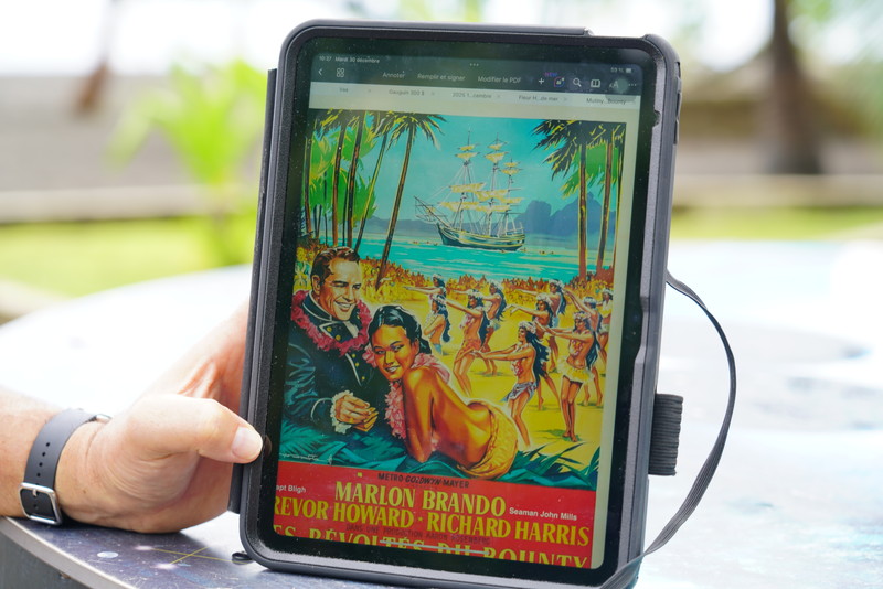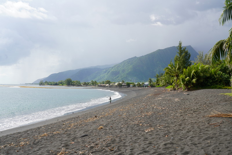 下の写真は往年の名優マーロン・ブランドが主演した1962年のアメリカ映画「戦艦バウンティ(バウンティ号の反乱)」のポスターの画像です。次の下の写真に海岸の風景を写しましたが、まさにタヒチのこの場所でロケが行われたそうです。ここの海岸はもともとは黒砂海岸でしたが、当時映画を撮るためにわざわざ白砂を運んできて敷き詰めたそうです。
