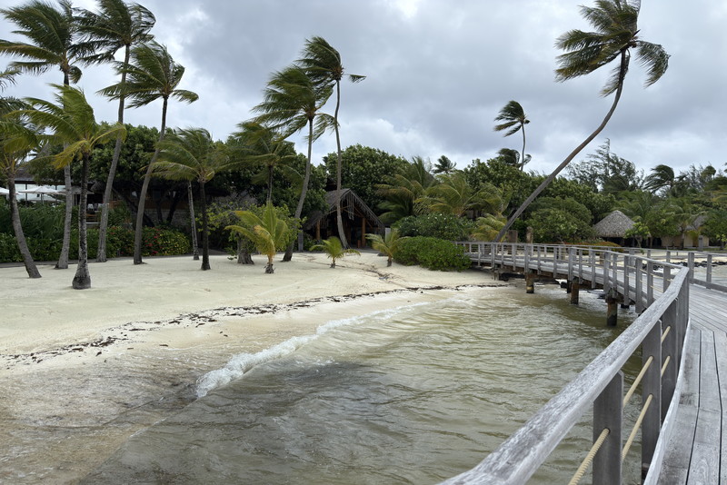 雨と風がかなり激しくなってきたので予定を切り上げて早めにホテルへ戻ることにしました。帰りの道中で撮影した動画を2本掲載します。ボラボラ島の周りのラグーンにはいくつかのホテルの水上コテージ群があり、ホテルによってそれぞれ建物の造りが異なっていて興味深かったです。