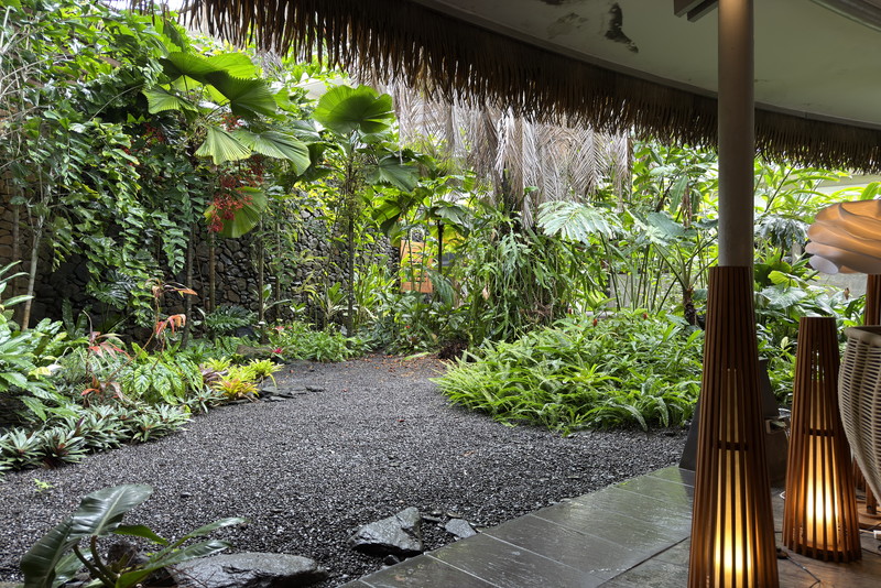 下の写真は1階の通路からお庭を眺めた風景です。南国の植物がたくさん植えられていました。